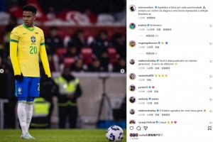 埃斯特旺也在社媒曬出本場照片,配文寫道:“為每一次機會感謝上帝,能夠代表巴西國家隊出戰一直是一份榮譽!”