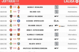 體育資訊11月19日訊 西甲第17輪各場開球時間公布,12月21日4點皇馬vs塞維利亞,23:15比利亞雷亞爾vs巴薩。