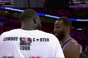 賽后,追夢和維金斯寒暄,庫里也和阿德巴約聊聊。