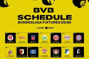 多特蒙德25/26賽季德甲比賽賽程如下(輪次,對手,主客場,日期):