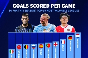 體育資訊11月20日訊 德國(guó)轉(zhuǎn)會(huì)市場(chǎng)統(tǒng)計(jì)了歐洲總身價(jià)前10聯(lián)賽的場(chǎng)均進(jìn)球數(shù)量,并列出榜單,荷甲3.36球居首,德甲、法甲二三位、意甲2.22球墊底。