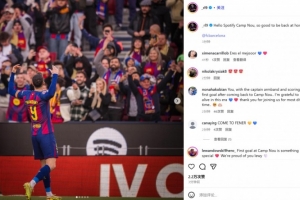 他也在賽后通過社媒曬出自己的慶祝照,并配文:“你好,諾坎普!回家的感覺真棒!”