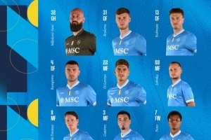 那不勒斯首發:32-瓦尼亞·米林科維奇、31-別克馬、13-拉赫馬尼、4-布翁喬爾諾、22-迪洛倫佐、68-洛博特卡、8-麥克托米奈、3-米格爾·古鐵雷斯、7-內雷斯、19-霍伊倫、70-諾阿·朗