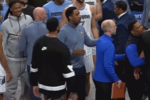 GIF-比賽結束后 場上的克萊和場邊的莫蘭特吵起來了