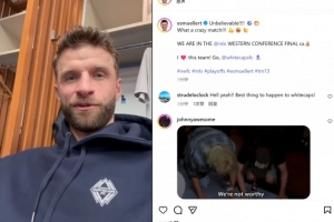 他也在賽后通過社媒紀念晉級:“難以置信!!!! ????多么瘋狂的一場比賽!!! ??????我們晉級西部決賽了????我??這支球隊!加油, @溫哥華白浪??”
