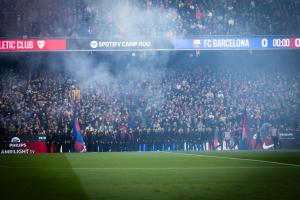 重返Spotify諾坎普球場的渴望顯而易見。新安裝的每個座位上洋溢著歡欣的笑臉,賽前表演的熱烈氛圍令人難忘。轉眼間,看臺已溢滿激情與紅藍戰袍的海洋——距離上一次見證這般盛況已過去909天。無論老少,人們早早起身,舉起手機定格此刻,隨后便隨著Mon DJ的節奏翩然起舞。