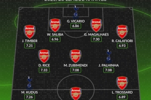 體育資訊11月23日訊 在北倫敦德比開戰之前,著名數據網站WhoScored評選出了兩隊合體評分最高陣,阿森納8人,熱刺3人入選,約克雷斯、賴斯、蘇維門迪、加布里埃爾、薩利巴系數入選。