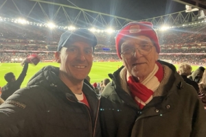 槍手跟隊記者Charles Watts在賽后并未就比賽進行點評,但曬出自己和一位老槍迷(很可能是他的父親)的合照,并配文:“我們每年都在變老,但這種感覺卻絲毫未變。事實上,它可能會變得更加特別。阿森納!北倫敦一如既往是紅色的!”