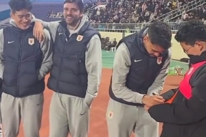 澤卡、馬德魯加、彭嘯來到了比賽現場,與當地球迷互動。