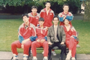 上世紀八十年代,郭玉佩(前排右二)與國青男籃出國比賽。前排右一為中國籃球名人堂成員鞏曉彬,后排右二為中國籃球名人堂成員胡衛東。
