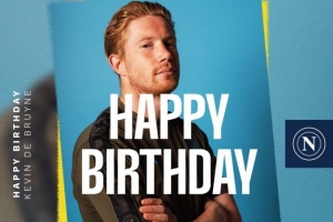 那不勒斯官方社媒曬出為德布勞內制作的生日海報,配文:“生日快樂,凱文!讓我們一起書寫未來!”