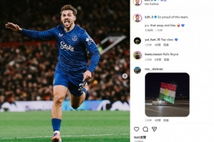 霍爾也在賽后通過社媒曬出自己的慶祝照,并配文:“為這支球隊感到無比自豪..順帶一提,我們的客場球迷(真是絕了)??”