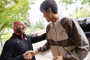 開拓者官推曬出了楊瀚森在開拓者的第一天組圖: