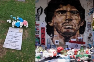 如今,馬拉多納長眠于布宜諾斯艾利斯貝拉維斯塔花園私人墓地,與他的父母朵娜·托塔和老迭戈相伴。在那里,一塊簡樸的墓碑守護著這位阿根廷球星的遺骸。由于一些不法分子企圖盜竊,這塊墓碑不得不頻繁更換。無論他們是否得逞,都無法抹去他在全世界足球迷心中的記憶。