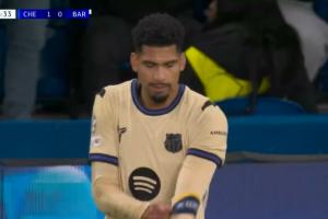 體育資訊11月26日訊 歐冠聯賽階段第5輪,切爾西半場1-0領先巴薩,巴薩本場首發隊長阿勞霍第44分鐘吃到本場第2張黃牌,兩黃變一紅被罰下場,巴薩落入半場一球落后+少打一人的困境中。