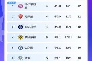 體育資訊11月26日訊 歐冠第5輪首日比賽結(jié)束,最新積分榜情況出爐。