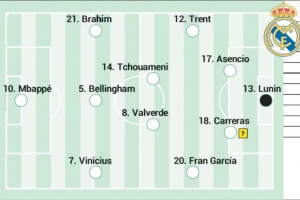 西班牙媒體《阿斯報》預測了皇馬此役的首發陣容,姆巴佩領銜,維尼修斯、迪亞斯、阿諾德在列。
