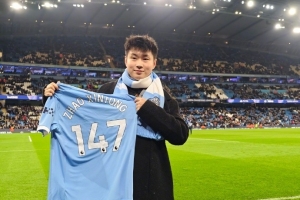 北京時間11月26日凌晨4時,歐冠聯賽階段第5輪,曼城主場不敵勒沃庫森。本場比賽,新科斯諾克世錦賽冠軍趙心童現場觀賽,他向全場球迷展示了世錦賽冠軍獎杯,并且還獲贈一件印有他名字的曼城147號球衣。