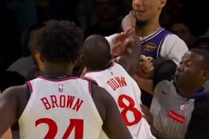 東契奇搶板被推 海斯幫東契奇出頭從背后推搡鄧恩 雙方爆發沖突
