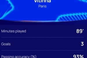 本場比賽維蒂尼亞上演帽子戲法,賽后他也當選歐冠官方評選出的本場比賽最佳球員。