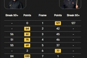 諾鵬·桑卡姆打出單桿127分,龐俊旭打出56、51、55、84分共四桿50+,最終龐俊旭以6-2的比分戰勝諾鵬·???,晉級英錦賽正賽。