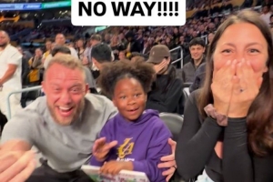 體育資訊11月28日訊 一位網(wǎng)友在Instagram上曬出了近日他們一家三口去觀看湖人主場(chǎng)比賽時(shí)的花絮。