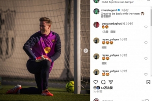 長(zhǎng)期因傷缺席的巴薩門(mén)將特爾施特根已經(jīng)回歸訓(xùn)練場(chǎng),朝著復(fù)出邁出堅(jiān)實(shí)一步,他在社交媒體上曬出訓(xùn)練照片,配文:“很高興回歸球隊(duì)。”