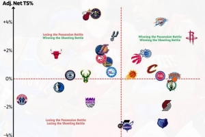 橫軸往右代表能比對(duì)手獲得更多出手 縱軸向上是比對(duì)手終結(jié)效率更高