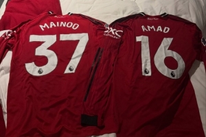 加納喬社媒曬出多張日常生活照,其中包括曼聯球員梅努、阿瑪德的球衣照片。