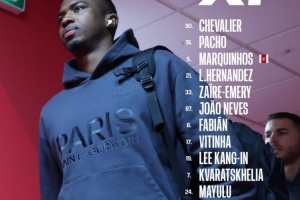 巴黎首發:舍瓦利耶;帕喬、馬爾基尼奧斯、盧卡斯·埃爾南德斯、埃梅里、若昂·內維斯、法比安、維蒂尼亞、李剛仁、克瓦拉茨赫利亞、馬尤盧