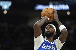 雄鹿球員波蒂斯上半場替補出戰表現不錯,尤其是三分線外百發百中。