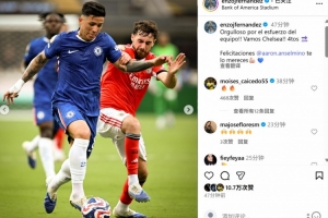 賽后恩佐在個人社媒曬出本場照片,配文寫道:“為球隊的努力感到驕傲!切爾西加油, 我們進入四分之一決賽!祝賀安塞爾米諾,這是你應得的!”