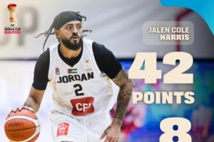 此役,約旦歸化球員、前同曦外援杰倫·哈里斯表現神勇,他登場29分56秒24投13中,三分16中8、罰球9中8,狂砍42分6籃板2助攻2搶斷,正負值+49。