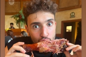 火箭官方曬出申京吃火雞的照片,寫道:“感恩節雖然結束了,但我們仍在享用美食!”