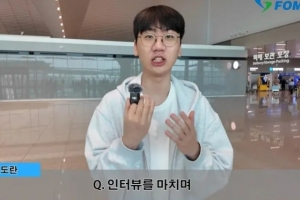 體育資訊6月29日訊 韓媒fomos發(fā)布T1上單Doran選手出國(guó)機(jī)場(chǎng)的視頻采訪;