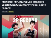 日前,李賢重在對陣中國男籃的比賽中砍下33分,帶領球隊在中國隊的主場贏得世預賽第1場勝利。全場比賽他投中9記三分球,打破了世界杯資格賽階段單場三分球最高紀錄,成為歷史第1人。