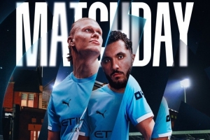 曼城官方社媒發布了為此役制作的海報,哈蘭德、謝爾基出鏡,配文:“倫敦在呼喚!”