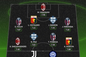 中場:薩勒馬科爾斯(米蘭)、帕斯(科莫)、波貝加(博洛尼亞)、A·馬丁(熱那亞)