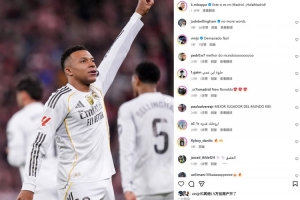 本場比賽姆巴佩2射1傳,賽后他也在社媒曬出本場慶祝進球的照片,配文寫道:“這就是我的皇馬。加油,馬德里!”