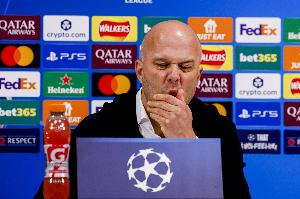 斯洛特說:“是的,我覺得在比賽的最后幾分鐘,我們非常接近打進第二球,因為我們有幾次定位球機會,而且持續壓在對方禁區附近。他們完全無法從這種局面中脫身。但就在其中一次定位球的第二落點中,我們將球吊入禁區,對方門將將球抱住。我抬頭時看到他們有一名球員在中線附近完全無人盯防。好在基耶薩沒有認為“啊,這球離我太遠,我做不了什么了”,而是繼續全速沖刺,阿利松也將對方球員逼向外側,于是基耶薩得以在門線上完成解圍。我認為這是我們今晚至少應得的結果,也是他努力至少應得的回報。我的意思是,至少取得平局,是我們今晚應得的最低結果。”