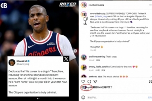 在為這支表現不佳的球隊奉獻了職業生涯一半的時間后,克里斯·保羅本打算回到快船隊,以一個完美的賽季結束自己的籃球生涯。然而,在賽季開始僅一個月后,這位即將退役的老將卻在深夜被球隊“送回家”。這一舉動引發了球迷的強烈不滿,有球迷在推特上直言:“快船管理層的行為簡直是犯罪。”