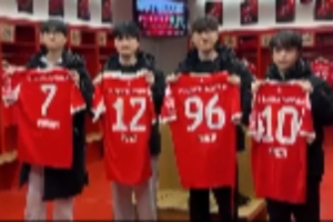 體育資訊12月4日訊 T1分享動(dòng)態(tài):選手們在拜仁主場手持球衣合照。