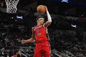 鵜鶘新秀費爾斯首節表現出色,不僅外線兩度干拔三分命中,還有一條龍快攻上籃的精彩表現,他還助攻馬特科維奇完成空接暴扣。