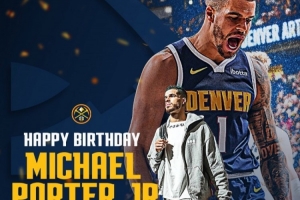 體育資訊6月30日訊 今天,掘金官方曬照,祝隊內球員小邁克爾-波特27歲生日快樂。
