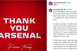 體育資訊6月11日訊 此前蘇超球隊凱爾特人官方宣布,阿森納后衛蒂爾尼時隔6年回歸球隊,簽約至2030年,對于自己離開阿森納,蒂爾尼也在社交媒體上進行了告別。