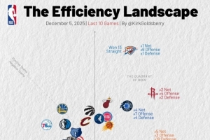 橫軸代表進攻效率,越靠右越好,縱軸代表防守效率,越靠上越強。第一象限的球隊多為發揮出色的球隊,而在第三象限的球隊通常為戰績比較糟糕的球隊。