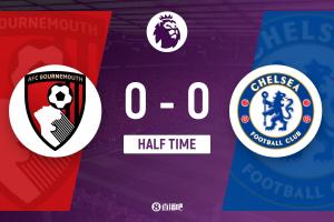 下半場傷停補(bǔ)時4分鐘,半場結(jié)束,切爾西暫0-0伯恩茅斯。