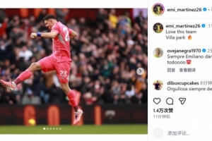 本場(chǎng)比賽維拉門將馬丁內(nèi)斯做出7次成功撲救,幫助球隊(duì)拿下勝利,賽后他也在社媒曬出慶祝勝利照片,配文寫道:“我愛這支球隊(duì),維拉公園球場(chǎng)!”