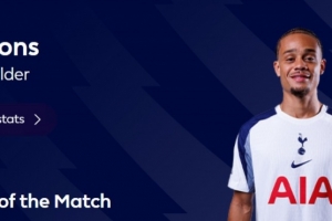 本場(chǎng)比賽哈維·西蒙斯傳射建功,賽后也當(dāng)選英超官方球迷票選全場(chǎng)最佳球員。