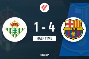 體育資訊12月7日訊 北京時間1:30,西甲第15輪皇家貝蒂斯vs巴塞羅那,比賽在塞維利亞奧林匹克體育場打響!上半場,安東尼破門幫助貝蒂斯取得領先,但隨后費蘭·托雷斯2分鐘2球將比分反超!佩德里助攻巴德吉再下一城;費蘭遠射破門完成帽子戲法!半場結束,巴薩暫時4-1領先貝蒂斯。